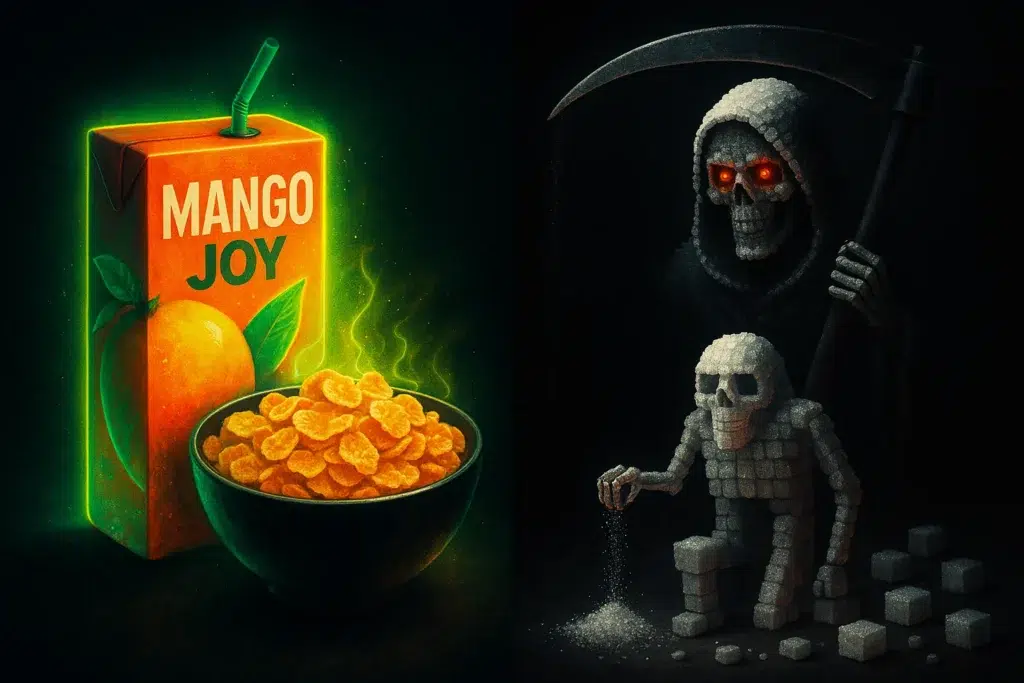 क्या आपको भी लगता है कि आप एक हेल्दी लाइफस्टाइल जी रहे हैं? सुबह एक गिलास पैक्ड ऑरेंज जूस, नाश्ते में कॉर्नफ्लेक्स, दोपहर के खाने के साथ थोड़ी सी टोमैटो सॉस और शाम को भूख लगने पर एक पैकेट बिस्किट… अगर आपकी दिनचर्या भी कुछ ऐसी ही है, तो शायद आप एक बहुत बड़े धोखे में जी रहे हैं। मेरे दोस्तों, आप हेल्दी नहीं, बल्कि हर दिन चीनी का एक ‘मीठा बम’ खा रहे हैं, और वो भी बिना जाने!